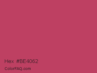 Hex #be4062 Color is a normal rose color and the nearest color is Deep Blush #b44668. Hex code #be4062 and RGB value is rgb(190,64,98). In RGB color space, this color is composed of 75% red, 25% green, 38% blue, In CMYK color space, this color is composed of 0% cyan, 66% magenta, 48% yellow , 25% black , In HSL color space, this color has a hue angle of 344° , 50% saturation and 50% lightness.