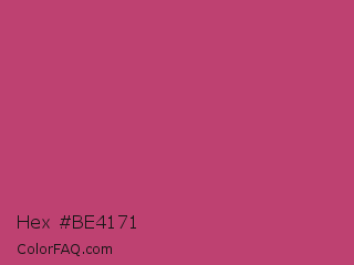 Hex #be4171 Color is a normal rose color and the nearest color is Fuchsia Rose #c74375. Hex code #be4171 and RGB value is rgb(190,65,113). In RGB color space, this color is composed of 75% red, 25% green, 44% blue, In CMYK color space, this color is composed of 0% cyan, 66% magenta, 41% yellow , 25% black , In HSL color space, this color has a hue angle of 337° , 49% saturation and 50% lightness.