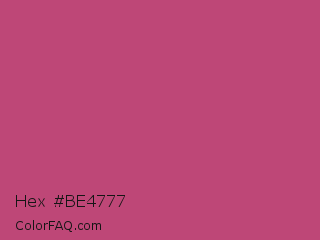 Hex #be4777 Color is a normal rose color and the nearest color is Fuchsia Rose #c74375. Hex code #be4777 and RGB value is rgb(190,71,119). In RGB color space, this color is composed of 75% red, 28% green, 47% blue, In CMYK color space, this color is composed of 0% cyan, 63% magenta, 37% yellow , 25% black , In HSL color space, this color has a hue angle of 336° , 48% saturation and 51% lightness.
