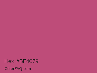 Hex #be4c79 Color is a normal rose color and the nearest color is Fuchsia Rose #c74375. Hex code #be4c79 and RGB value is rgb(190,76,121). In RGB color space, this color is composed of 75% red, 30% green, 47% blue, In CMYK color space, this color is composed of 0% cyan, 60% magenta, 36% yellow , 25% black , In HSL color space, this color has a hue angle of 336° , 47% saturation and 52% lightness.