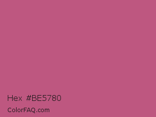 Hex #be5780 Color is a normal rose color and the nearest color is Tapestry #b05e81. Hex code #be5780 and RGB value is rgb(190,87,128). In RGB color space, this color is composed of 75% red, 34% green, 50% blue, In CMYK color space, this color is composed of 0% cyan, 54% magenta, 33% yellow , 25% black , In HSL color space, this color has a hue angle of 336° , 44% saturation and 54% lightness.