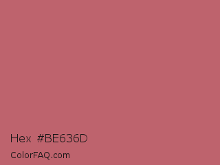 Hex #be636d Color is a normal red color and the nearest color is Fuzzy Wuzzy #cc6666. Hex code #be636d and RGB value is rgb(190,99,109). In RGB color space, this color is composed of 75% red, 39% green, 43% blue, In CMYK color space, this color is composed of 0% cyan, 48% magenta, 43% yellow , 25% black , In HSL color space, this color has a hue angle of 353° , 41% saturation and 57% lightness.