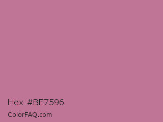 Hex #be7596 Color is a normal rose color and the nearest color is English Lavender #b48395. Hex code #be7596 and RGB value is rgb(190,117,150). In RGB color space, this color is composed of 75% red, 46% green, 59% blue, In CMYK color space, this color is composed of 0% cyan, 38% magenta, 21% yellow , 25% black , In HSL color space, this color has a hue angle of 333° , 36% saturation and 60% lightness.