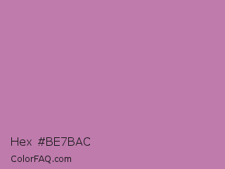 Hex #be7bac Color is a light magenta color and the nearest color is Opera Mauve #b784a7. Hex code #be7bac and RGB value is rgb(190,123,172). In RGB color space, this color is composed of 75% red, 48% green, 67% blue, In CMYK color space, this color is composed of 0% cyan, 35% magenta, 9% yellow , 25% black , In HSL color space, this color has a hue angle of 316° , 34% saturation and 61% lightness.