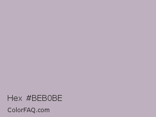 Hex #beb0be Color is a light magenta color and the nearest color is Pink Swan #beb5b7. Hex code #beb0be and RGB value is rgb(190,176,190). In RGB color space, this color is composed of 75% red, 69% green, 75% blue, In CMYK color space, this color is composed of 0% cyan, 7% magenta, 0% yellow , 25% black , In HSL color space, this color has a hue angle of 300° , 10% saturation and 72% lightness.