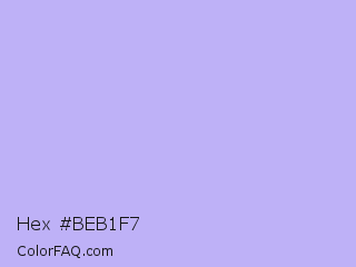 Hex #beb1f7 Color is a very light indigo color and the nearest color is Melrose #c7c1ff. Hex code #beb1f7 and RGB value is rgb(190,177,247). In RGB color space, this color is composed of 75% red, 69% green, 97% blue, In CMYK color space, this color is composed of 23% cyan, 28% magenta, 0% yellow , 3% black , In HSL color space, this color has a hue angle of 251° , 81% saturation and 83% lightness.