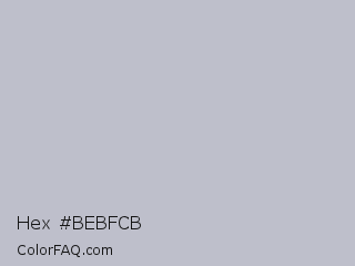 Hex #bebfcb Color is a light blue color and the nearest color is Gray Suit #c1becd. Hex code #bebfcb and RGB value is rgb(190,191,203). In RGB color space, this color is composed of 75% red, 75% green, 80% blue, In CMYK color space, this color is composed of 6% cyan, 6% magenta, 0% yellow , 20% black , In HSL color space, this color has a hue angle of 235° , 11% saturation and 77% lightness.