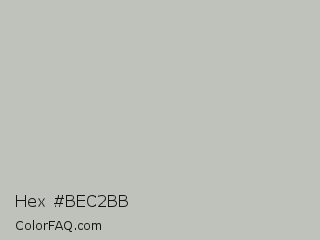 Hex #bec2bb Color is a light green color and the nearest color is Gray X11 Gray #bebebe. Hex code #bec2bb and RGB value is rgb(190,194,187). In RGB color space, this color is composed of 75% red, 76% green, 73% blue, In CMYK color space, this color is composed of 2% cyan, 0% magenta, 4% yellow , 24% black , In HSL color space, this color has a hue angle of 94° , 5% saturation and 75% lightness.