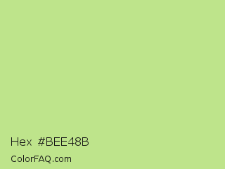 Hex #bee48b Color is a light green color and the nearest color is Medium Spring Bud #c9dc87. Hex code #bee48b and RGB value is rgb(190,228,139). In RGB color space, this color is composed of 75% red, 89% green, 55% blue, In CMYK color space, this color is composed of 17% cyan, 0% magenta, 39% yellow , 11% black , In HSL color space, this color has a hue angle of 86° , 62% saturation and 72% lightness.