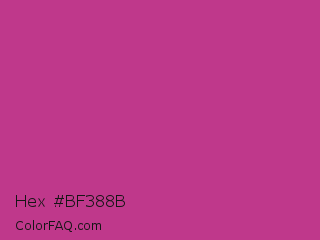 Hex #bf388b Color is a normal magenta color and the nearest color is Medium Red Violet #bb3385. Hex code #bf388b and RGB value is rgb(191,56,139). In RGB color space, this color is composed of 75% red, 22% green, 55% blue, In CMYK color space, this color is composed of 0% cyan, 71% magenta, 27% yellow , 25% black , In HSL color space, this color has a hue angle of 323° , 55% saturation and 48% lightness.