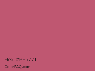 Hex #bf5771 Color is a normal red color and the nearest color is Popstar #be4f62. Hex code #bf5771 and RGB value is rgb(191,87,113). In RGB color space, this color is composed of 75% red, 34% green, 44% blue, In CMYK color space, this color is composed of 0% cyan, 54% magenta, 41% yellow , 25% black , In HSL color space, this color has a hue angle of 345° , 45% saturation and 55% lightness.