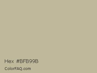 Hex #bfb99b Color is a light yellow color and the nearest color is Malta #bdb2a1. Hex code #bfb99b and RGB value is rgb(191,185,155). In RGB color space, this color is composed of 75% red, 73% green, 61% blue, In CMYK color space, this color is composed of 0% cyan, 3% magenta, 19% yellow , 25% black , In HSL color space, this color has a hue angle of 50° , 22% saturation and 68% lightness.