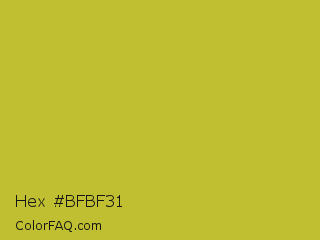 Hex #bfbf31 Color is a normal yellow color and the nearest color is Earls Green #c9b93b. Hex code #bfbf31 and RGB value is rgb(191,191,49). In RGB color space, this color is composed of 75% red, 75% green, 19% blue, In CMYK color space, this color is composed of 0% cyan, 0% magenta, 74% yellow , 25% black , In HSL color space, this color has a hue angle of 60° , 59% saturation and 47% lightness.