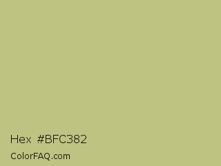 Hex #bfc382 Color is a light yellow color and the nearest color is Sage #bcb88a. Hex code #bfc382 and RGB value is rgb(191,195,130). In RGB color space, this color is composed of 75% red, 76% green, 51% blue, In CMYK color space, this color is composed of 2% cyan, 0% magenta, 33% yellow , 24% black , In HSL color space, this color has a hue angle of 64° , 35% saturation and 64% lightness.
