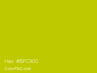 Hex #bfc900 Color is a normal yellow color and the nearest color is Rio Grande #bbd009. Hex code #bfc900 and RGB value is rgb(191,201,0). In RGB color space, this color is composed of 75% red, 79% green, 0% blue, In CMYK color space, this color is composed of 5% cyan, 0% magenta, 100% yellow , 21% black , In HSL color space, this color has a hue angle of 63° , 100% saturation and 39% lightness.