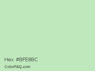 Hex #bfe8bc Color is a very light green color and the nearest color is Madang #b7f0be. Hex code #bfe8bc and RGB value is rgb(191,232,188). In RGB color space, this color is composed of 75% red, 91% green, 74% blue, In CMYK color space, this color is composed of 18% cyan, 0% magenta, 19% yellow , 9% black , In HSL color space, this color has a hue angle of 116° , 49% saturation and 82% lightness.