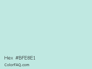 Hex #bfe8e1 Color is a very light cyan color and the nearest color is Jagged Ice #c2e8e5. Hex code #bfe8e1 and RGB value is rgb(191,232,225). In RGB color space, this color is composed of 75% red, 91% green, 88% blue, In CMYK color space, this color is composed of 18% cyan, 0% magenta, 3% yellow , 9% black , In HSL color space, this color has a hue angle of 170° , 47% saturation and 83% lightness.