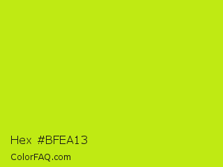 Hex #bfea13 Color is a normal lime color and the nearest color is Las Palmas #c6e610. Hex code #bfea13 and RGB value is rgb(191,234,19). In RGB color space, this color is composed of 75% red, 92% green, 7% blue, In CMYK color space, this color is composed of 18% cyan, 0% magenta, 92% yellow , 8% black , In HSL color space, this color has a hue angle of 72° , 85% saturation and 50% lightness.