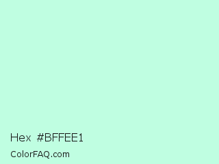 Hex #bffee1 Color is a very light green color and the nearest color is Aero Blue #c9ffe5. Hex code #bffee1 and RGB value is rgb(191,254,225). In RGB color space, this color is composed of 75% red, 100% green, 88% blue, In CMYK color space, this color is composed of 25% cyan, 0% magenta, 11% yellow , 0% black , In HSL color space, this color has a hue angle of 152° , 97% saturation and 87% lightness.