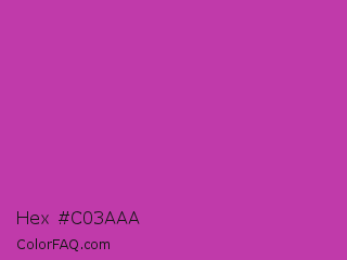 Hex #c03aaa Color is a normal magenta color and the nearest color is Byzantine #bd33a4. Hex code #c03aaa and RGB value is rgb(192,58,170). In RGB color space, this color is composed of 75% red, 23% green, 67% blue, In CMYK color space, this color is composed of 0% cyan, 70% magenta, 11% yellow , 25% black , In HSL color space, this color has a hue angle of 310° , 54% saturation and 49% lightness.