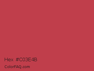 Hex #c03e4b Color is a normal red color and the nearest color is Brick Red #cb4154. Hex code #c03e4b and RGB value is rgb(192,62,75). In RGB color space, this color is composed of 75% red, 24% green, 29% blue, In CMYK color space, this color is composed of 0% cyan, 68% magenta, 61% yellow , 25% black , In HSL color space, this color has a hue angle of 354° , 51% saturation and 50% lightness.