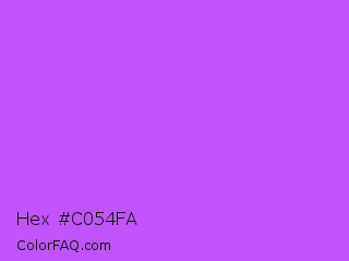 Hex #c054fa Color is a light purple color and the nearest color is Medium Orchid #ba55d3. Hex code #c054fa and RGB value is rgb(192,84,250). In RGB color space, this color is composed of 75% red, 33% green, 98% blue, In CMYK color space, this color is composed of 23% cyan, 66% magenta, 0% yellow , 2% black , In HSL color space, this color has a hue angle of 279° , 94% saturation and 65% lightness.
