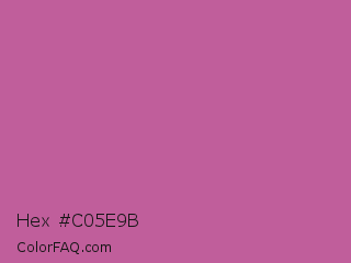 Hex #c05e9b Color is a normal magenta color and the nearest color is Pearly Purple #b768a2. Hex code #c05e9b and RGB value is rgb(192,94,155). In RGB color space, this color is composed of 75% red, 37% green, 61% blue, In CMYK color space, this color is composed of 0% cyan, 51% magenta, 19% yellow , 25% black , In HSL color space, this color has a hue angle of 323° , 44% saturation and 56% lightness.