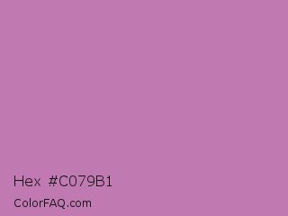 Hex #c079b1 Color is a light magenta color and the nearest color is Sky Magenta #cf71af. Hex code #c079b1 and RGB value is rgb(192,121,177). In RGB color space, this color is composed of 75% red, 47% green, 69% blue, In CMYK color space, this color is composed of 0% cyan, 37% magenta, 8% yellow , 25% black , In HSL color space, this color has a hue angle of 313° , 36% saturation and 61% lightness.