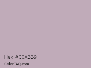 Hex #c0abb9 Color is a light magenta color and the nearest color is Black Shadows #bfafb2. Hex code #c0abb9 and RGB value is rgb(192,171,185). In RGB color space, this color is composed of 75% red, 67% green, 73% blue, In CMYK color space, this color is composed of 0% cyan, 11% magenta, 4% yellow , 25% black , In HSL color space, this color has a hue angle of 320° , 14% saturation and 71% lightness.