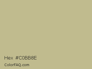 Hex #c0bb8e Color is a light yellow color and the nearest color is Sage #bcb88a. Hex code #c0bb8e and RGB value is rgb(192,187,142). In RGB color space, this color is composed of 75% red, 73% green, 56% blue, In CMYK color space, this color is composed of 0% cyan, 3% magenta, 26% yellow , 25% black , In HSL color space, this color has a hue angle of 54° , 28% saturation and 65% lightness.