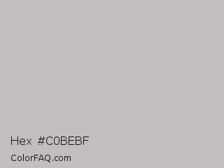 Hex #c0bebf Color is a light rose color and the nearest color is Silver #c0c0c0. Hex code #c0bebf and RGB value is rgb(192,190,191). In RGB color space, this color is composed of 75% red, 75% green, 75% blue, In CMYK color space, this color is composed of 0% cyan, 1% magenta, 1% yellow , 25% black , In HSL color space, this color has a hue angle of 330° , 2% saturation and 75% lightness.