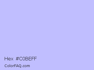 Hex #c0beff Color is a very light indigo color and the nearest color is Melrose #c7c1ff. Hex code #c0beff and RGB value is rgb(192,190,255). In RGB color space, this color is composed of 75% red, 75% green, 100% blue, In CMYK color space, this color is composed of 25% cyan, 25% magenta, 0% yellow , 0% black , In HSL color space, this color has a hue angle of 242° , 100% saturation and 87% lightness.