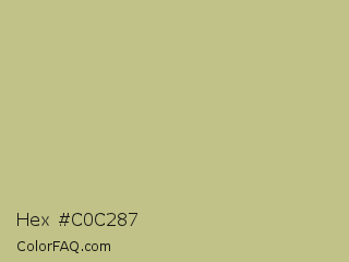 Hex #c0c287 Color is a light yellow color and the nearest color is Sage #bcb88a. Hex code #c0c287 and RGB value is rgb(192,194,135). In RGB color space, this color is composed of 75% red, 76% green, 53% blue, In CMYK color space, this color is composed of 1% cyan, 0% magenta, 30% yellow , 24% black , In HSL color space, this color has a hue angle of 62° , 33% saturation and 65% lightness.