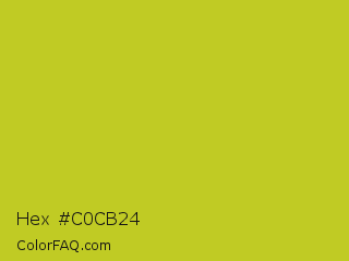 Hex #c0cb24 Color is a normal yellow color and the nearest color is Key Lime Pie #bfc921. Hex code #c0cb24 and RGB value is rgb(192,203,36). In RGB color space, this color is composed of 75% red, 80% green, 14% blue, In CMYK color space, this color is composed of 5% cyan, 0% magenta, 82% yellow , 20% black , In HSL color space, this color has a hue angle of 64° , 70% saturation and 47% lightness.