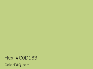 Hex #c0d183 Color is a light lime color and the nearest color is Medium Spring Bud #c9dc87. Hex code #c0d183 and RGB value is rgb(192,209,131). In RGB color space, this color is composed of 75% red, 82% green, 51% blue, In CMYK color space, this color is composed of 8% cyan, 0% magenta, 37% yellow , 18% black , In HSL color space, this color has a hue angle of 73° , 46% saturation and 67% lightness.