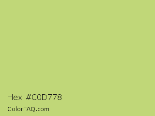 Hex #c0d778 Color is a light lime color and the nearest color is Yellow Green #c5e17a. Hex code #c0d778 and RGB value is rgb(192,215,120). In RGB color space, this color is composed of 75% red, 84% green, 47% blue, In CMYK color space, this color is composed of 11% cyan, 0% magenta, 44% yellow , 16% black , In HSL color space, this color has a hue angle of 75° , 54% saturation and 66% lightness.