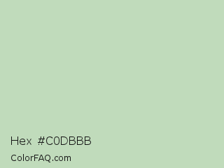 Hex #c0dbbb Color is a light green color and the nearest color is Pixie Green #c0d8b6. Hex code #c0dbbb and RGB value is rgb(192,219,187). In RGB color space, this color is composed of 75% red, 86% green, 73% blue, In CMYK color space, this color is composed of 12% cyan, 0% magenta, 15% yellow , 14% black , In HSL color space, this color has a hue angle of 111° , 31% saturation and 80% lightness.