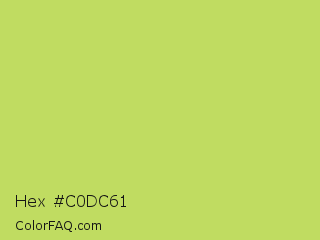 Hex #c0dc61 Color is a light lime color and the nearest color is June Bud #bdda57. Hex code #c0dc61 and RGB value is rgb(192,220,97). In RGB color space, this color is composed of 75% red, 86% green, 38% blue, In CMYK color space, this color is composed of 13% cyan, 0% magenta, 56% yellow , 14% black , In HSL color space, this color has a hue angle of 74° , 64% saturation and 62% lightness.
