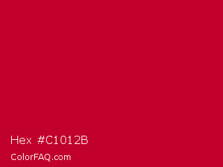 Hex #c1012b Color is a normal red color and the nearest color is Crimson Glory #be0032. Hex code #c1012b and RGB value is rgb(193,1,43). In RGB color space, this color is composed of 76% red, 0% green, 17% blue, In CMYK color space, this color is composed of 0% cyan, 99% magenta, 78% yellow , 24% black , In HSL color space, this color has a hue angle of 347° , 99% saturation and 38% lightness.