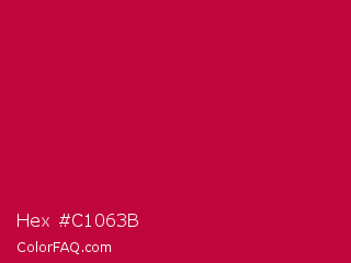 Hex #c1063b Color is a normal rose color and the nearest color is Red NCS #c40233. Hex code #c1063b and RGB value is rgb(193,6,59). In RGB color space, this color is composed of 76% red, 2% green, 23% blue, In CMYK color space, this color is composed of 0% cyan, 97% magenta, 69% yellow , 24% black , In HSL color space, this color has a hue angle of 343° , 94% saturation and 39% lightness.