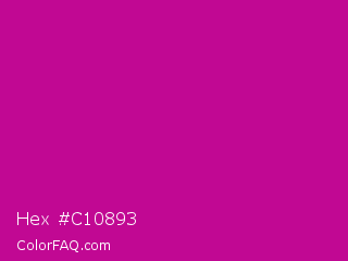Hex #c10893 Color is a normal magenta color and the nearest color is Red Violet #c71585. Hex code #c10893 and RGB value is rgb(193,8,147). In RGB color space, this color is composed of 76% red, 3% green, 58% blue, In CMYK color space, this color is composed of 0% cyan, 96% magenta, 24% yellow , 24% black , In HSL color space, this color has a hue angle of 315° , 92% saturation and 39% lightness.