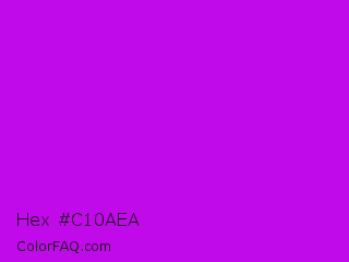Hex #c10aea Color is a normal purple color and the nearest color is Vivid Mulberry #b80ce3. Hex code #c10aea and RGB value is rgb(193,10,234). In RGB color space, this color is composed of 76% red, 4% green, 92% blue, In CMYK color space, this color is composed of 18% cyan, 96% magenta, 0% yellow , 8% black , In HSL color space, this color has a hue angle of 289° , 92% saturation and 48% lightness.