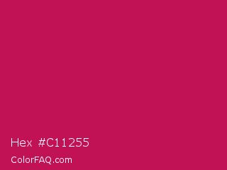 Hex #c11255 Color is a normal rose color and the nearest color is Pictorial Carmine #c30b4e. Hex code #c11255 and RGB value is rgb(193,18,85). In RGB color space, this color is composed of 76% red, 7% green, 33% blue, In CMYK color space, this color is composed of 0% cyan, 91% magenta, 56% yellow , 24% black , In HSL color space, this color has a hue angle of 337° , 83% saturation and 41% lightness.