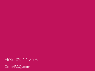 Hex #c1125b Color is a normal rose color and the nearest color is Rose Red #c21e56. Hex code #c1125b and RGB value is rgb(193,18,91). In RGB color space, this color is composed of 76% red, 7% green, 36% blue, In CMYK color space, this color is composed of 0% cyan, 91% magenta, 53% yellow , 24% black , In HSL color space, this color has a hue angle of 335° , 83% saturation and 41% lightness.