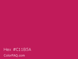 Hex #c11b5a Color is a normal rose color and the nearest color is Rose Red #c21e56. Hex code #c11b5a and RGB value is rgb(193,27,90). In RGB color space, this color is composed of 76% red, 11% green, 35% blue, In CMYK color space, this color is composed of 0% cyan, 86% magenta, 53% yellow , 24% black , In HSL color space, this color has a hue angle of 337° , 75% saturation and 43% lightness.