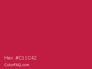 Hex #c11c42 Color is a normal red color and the nearest color is Maroon Flush #c32148. Hex code #c11c42 and RGB value is rgb(193,28,66). In RGB color space, this color is composed of 76% red, 11% green, 26% blue, In CMYK color space, this color is composed of 0% cyan, 85% magenta, 66% yellow , 24% black , In HSL color space, this color has a hue angle of 346° , 75% saturation and 43% lightness.