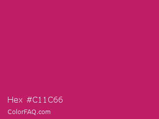Hex #c11c66 Color is a normal rose color and the nearest color is Rose Red #c21e56. Hex code #c11c66 and RGB value is rgb(193,28,102). In RGB color space, this color is composed of 76% red, 11% green, 40% blue, In CMYK color space, this color is composed of 0% cyan, 85% magenta, 47% yellow , 24% black , In HSL color space, this color has a hue angle of 333° , 75% saturation and 43% lightness.