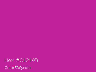 Hex #c1219b Color is a normal magenta color and the nearest color is Royal Fuchsia #ca2c92. Hex code #c1219b and RGB value is rgb(193,33,155). In RGB color space, this color is composed of 76% red, 13% green, 61% blue, In CMYK color space, this color is composed of 0% cyan, 83% magenta, 20% yellow , 24% black , In HSL color space, this color has a hue angle of 314° , 71% saturation and 44% lightness.