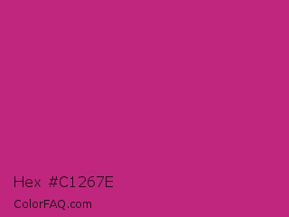 Hex #c1267e Color is a normal magenta color and the nearest color is Magenta Dye #ca1f7b. Hex code #c1267e and RGB value is rgb(193,38,126). In RGB color space, this color is composed of 76% red, 15% green, 49% blue, In CMYK color space, this color is composed of 0% cyan, 80% magenta, 35% yellow , 24% black , In HSL color space, this color has a hue angle of 326° , 67% saturation and 45% lightness.