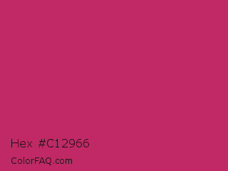 Hex #c12966 Color is a normal rose color and the nearest color is Hibiscus #b6316c. Hex code #c12966 and RGB value is rgb(193,41,102). In RGB color space, this color is composed of 76% red, 16% green, 40% blue, In CMYK color space, this color is composed of 0% cyan, 79% magenta, 47% yellow , 24% black , In HSL color space, this color has a hue angle of 336° , 65% saturation and 46% lightness.